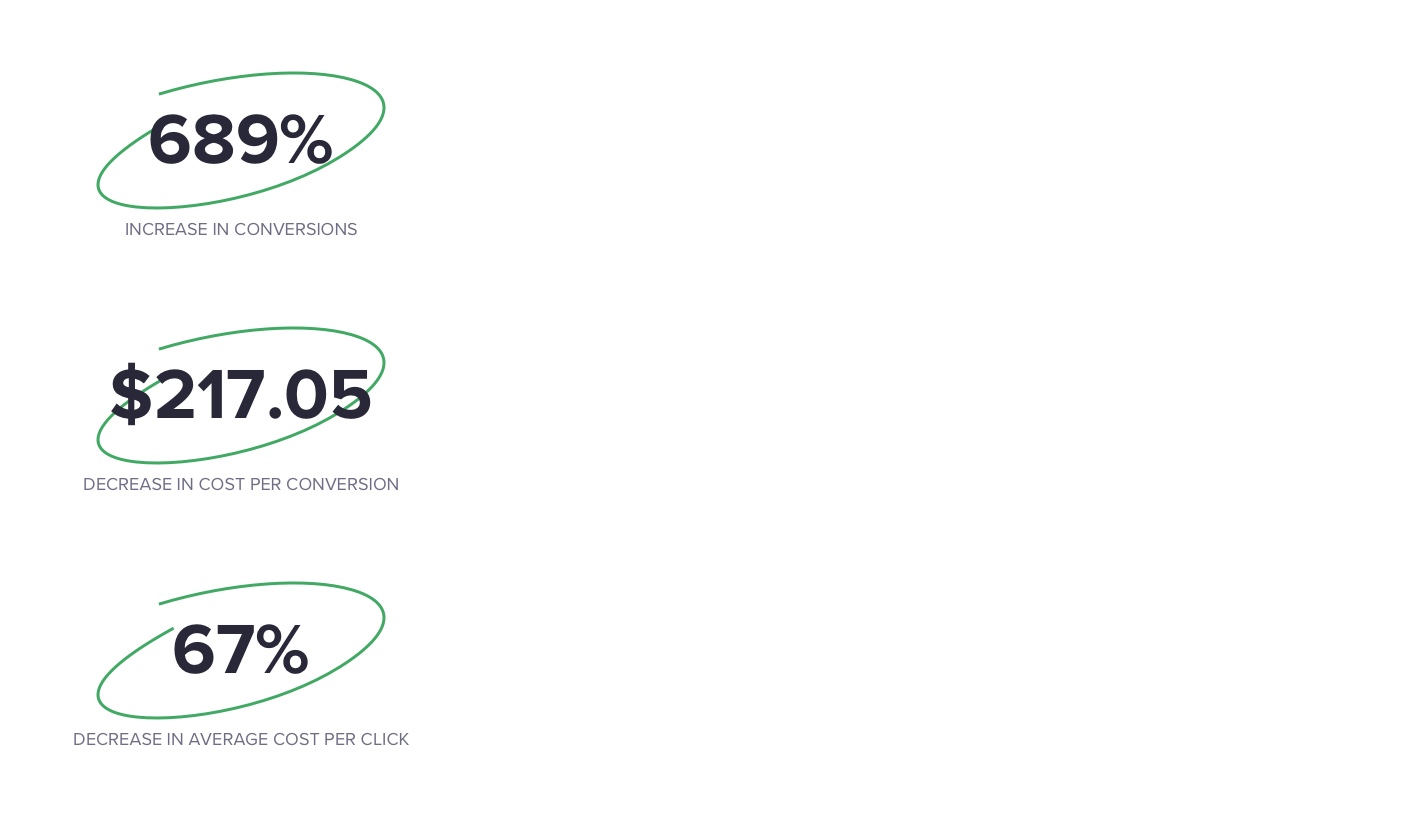 Our marketers went into the account, saw what a state it was in, and then scheduled a discovery meeting with Harris House as if they were starting from scratch. Then, instead of trying to fix the existing infrastructure, they created a totally new setup based on that discovery process. Finally, they double checked what they’d done with the extensive historical data the account had accumulated. By digging through their account and finding specific, real search terms from users, we were able to use the ones that had yielded the most conversions at the lowest price, which sets us up for success. We also were able to build on the existing negative keyword list, which further tightens up the account. The final result was extremely pared down with a much tighter focus — just 8 ad groups as opposed to 1,254. Utilizing Responsive Ads was a key strategy to getting this account under control.