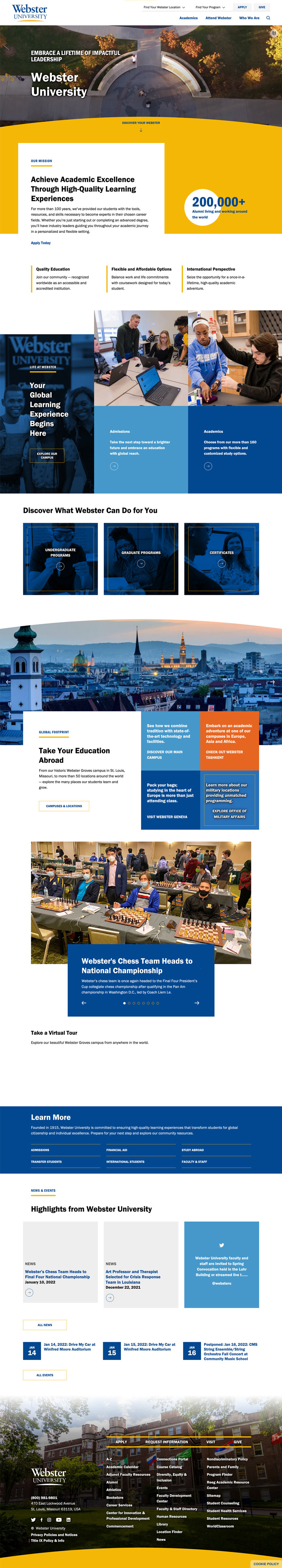 Webster University had created a new website for their main campus, but the websites for all of their international campuses no longer matched. We were hired to re-create the main website for each of the international campuses. This project was built using the OmniUpdate CMS platform.
